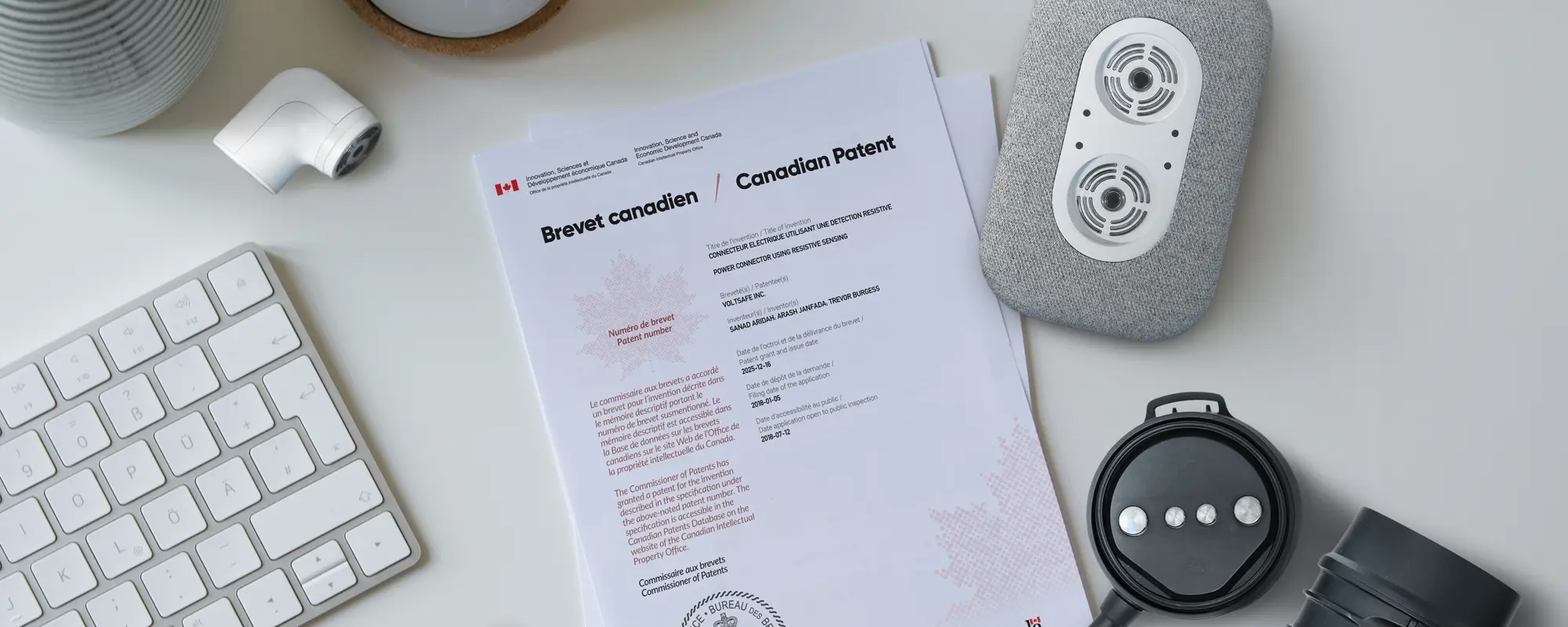 GATINEAU, QUEBEC – (January 6, 2026) – VoltSafe Inc. is thrilled to announce that the Canadian Intellectual Property Office (“CIPO”) has formally issued a patent covering the company’s core prongless “Electrical Fingerprint” technology. This patent underpins VoltSafe’s innovative approach to delivering safer, smarter, and more intelligent electrical power across multiple industries.